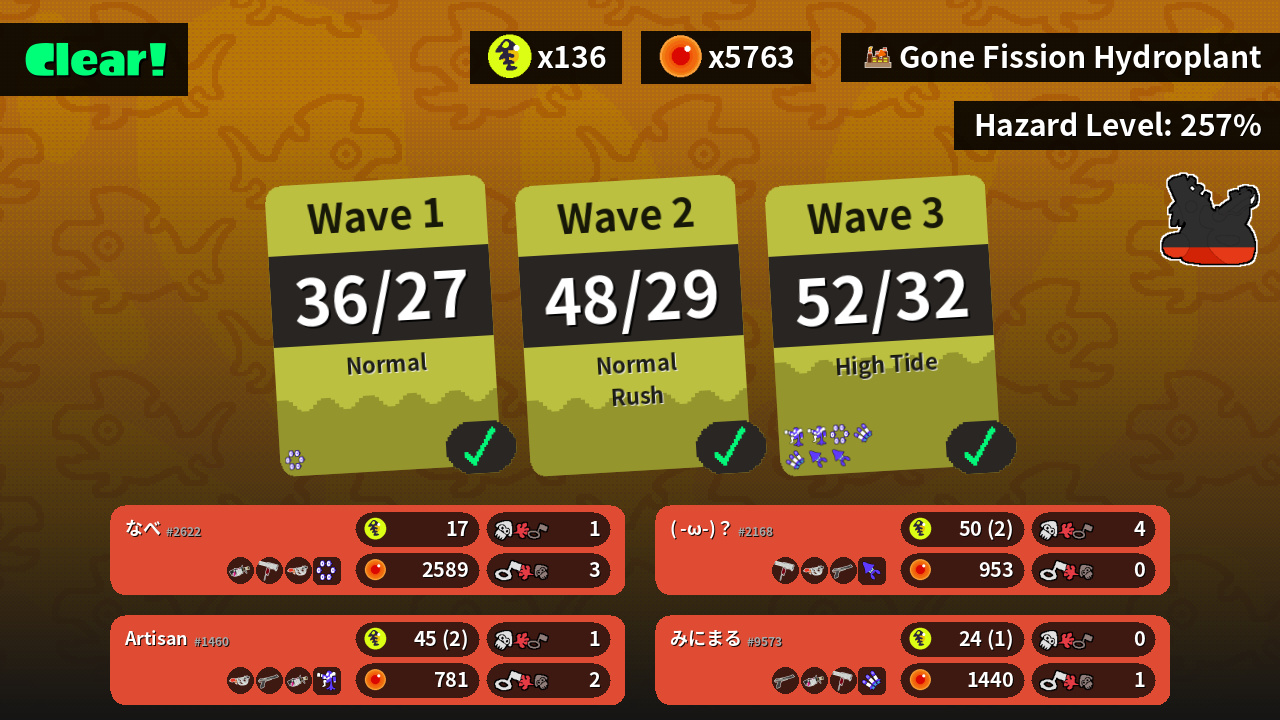 | Weapons | .96 Gal Flingza Roller Goo Tuber | Flingza Roller Goo Tuber N-ZAP '85 | Goo Tuber N-ZAP '85 .96 Gal | N-ZAP '85 .96 Gal Flingza Roller |