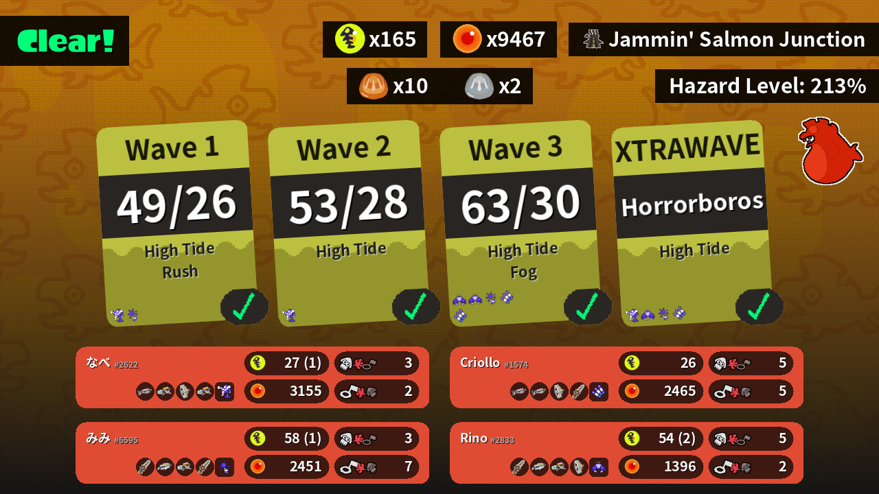 | Weapons | Grizzco Charger Grizzco Blaster Grizzco Stringer Grizzco Blaster | Grizzco Splatana Grizzco Brella Grizzco Blaster Grizzco Splatana | Grizzco Splatana Grizzco Brella Grizzco Blaster Grizzco Stringer | Grizzco Charger Grizzco Charger Grizzco Stringer Grizzco Splatana |