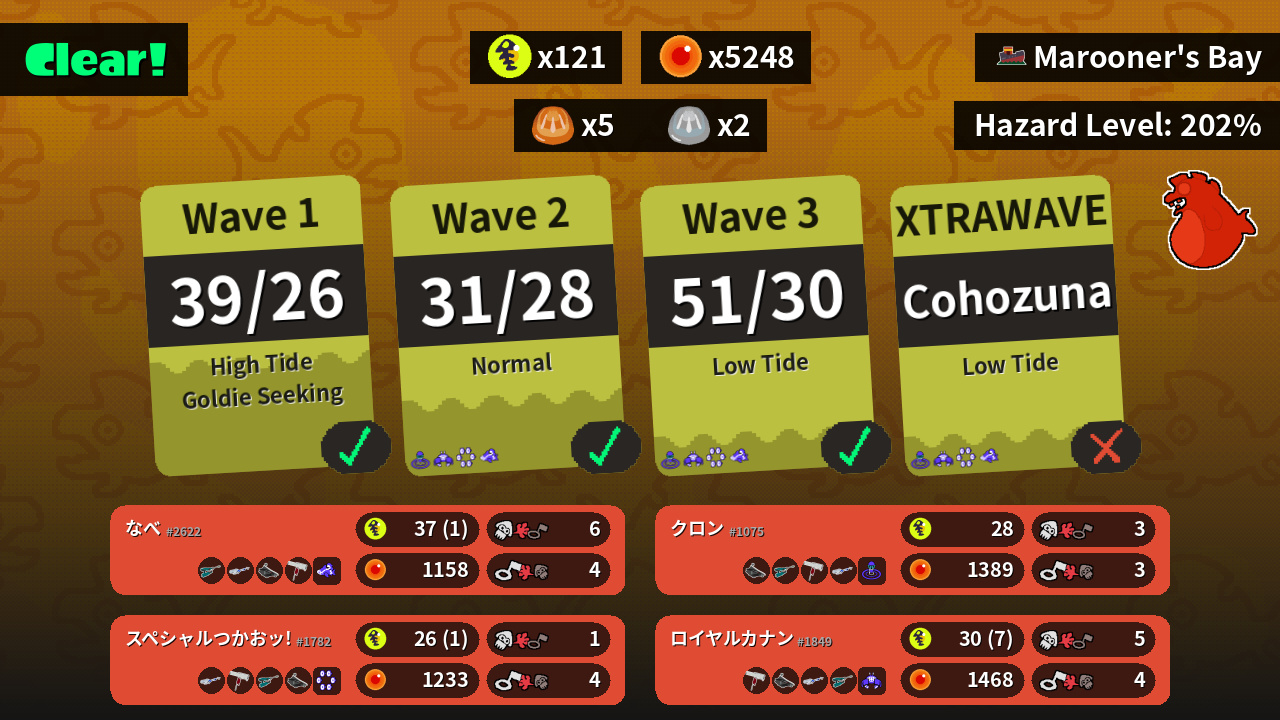 | Weapons | Jet Squelcher E-liter 4K Bloblobber Flingza Roller | Flingza Roller Bloblobber E-liter 4K Jet Squelcher | Bloblobber Jet Squelcher Flingza Roller E-liter 4K | E-liter 4K Flingza Roller Jet Squelcher Bloblobber |