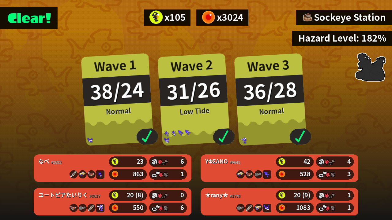 | Weapons | Splatana Wiper Splattershot Hydra Splatling | Splattershot Hydra Splatling Nautilus 47 | Nautilus 47 Splatana Wiper Splattershot | Hydra Splatling Nautilus 47 Splatana Wiper |