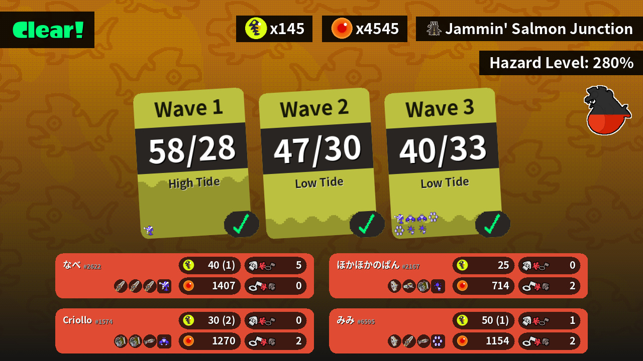 | Weapons | Grizzco Splatana Grizzco Splatana Grizzco Splatana | Grizzco Stringer Grizzco Splatana Grizzco Charger | Grizzco Slosher Grizzco Slosher Grizzco Charger | Grizzco Stringer Grizzco Blaster Grizzco Slosher |
