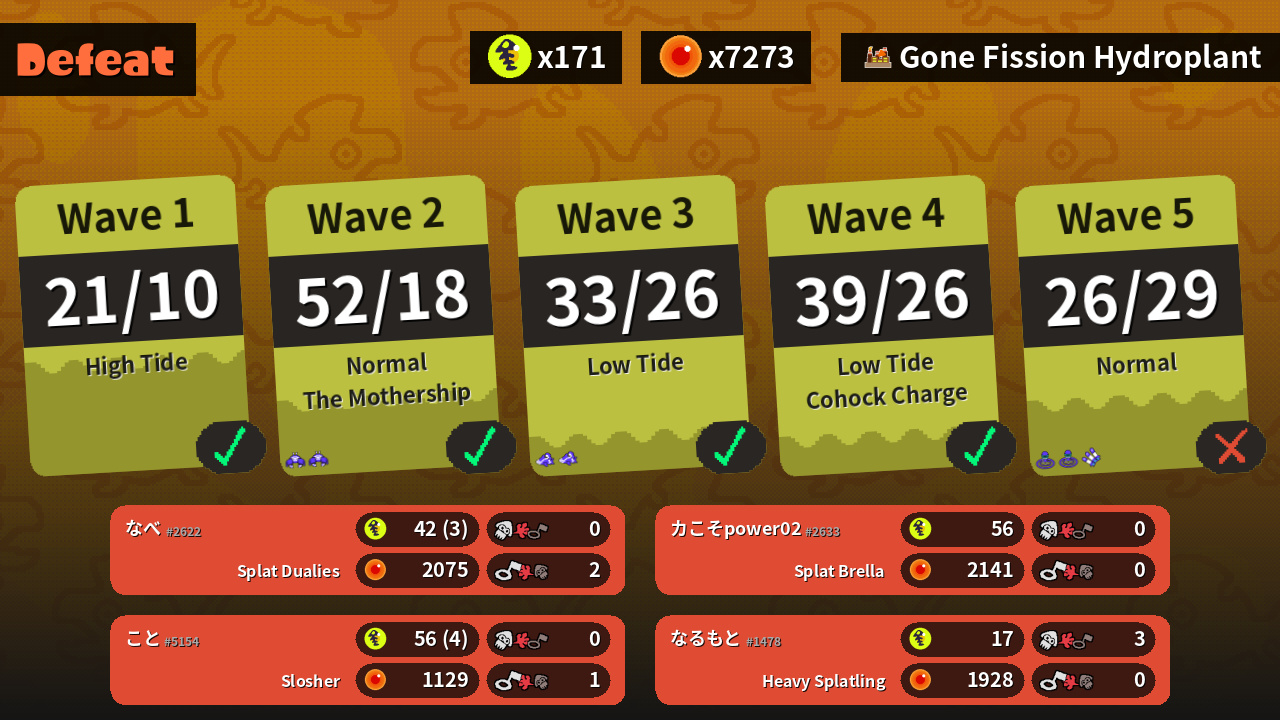 | Special | Reefslider (2) | Triple Inkstrike (1) | Crab Tank (2) | Wave Breaker (2) |