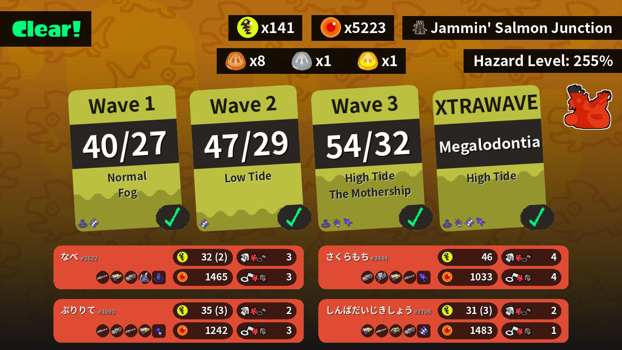 | Weapons | Splat Charger Splattershot S-BLAST '92 Slosher | S-BLAST '92 Clash Blaster Splattershot Splat Charger | Splat Charger S-BLAST '92 Splat Charger Splattershot | Splattershot Splat Charger Splash-o-matic S-BLAST '92 |