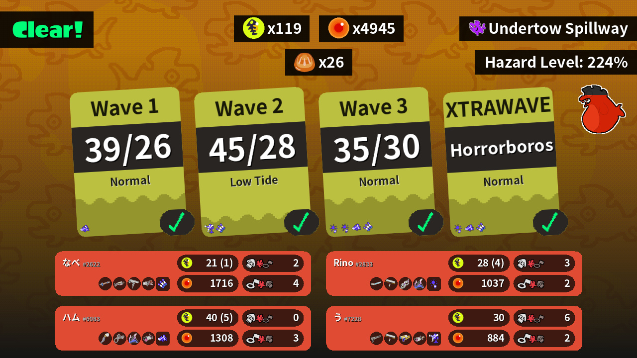 | Boss Salmonid | 22 | 21 | 12 | 18 |