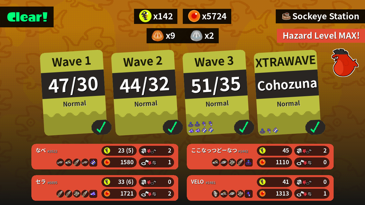 | Weapons | Grizzco Charger Grizzco Blaster Grizzco Splatana Grizzco Charger | Grizzco Blaster Grizzco Brella Grizzco Dualies Grizzco Splatana | Grizzco Stringer Grizzco Blaster Grizzco Brella Grizzco Dualies | Grizzco Splatana Grizzco Splatana Grizzco Dualies Grizzco Splatana |