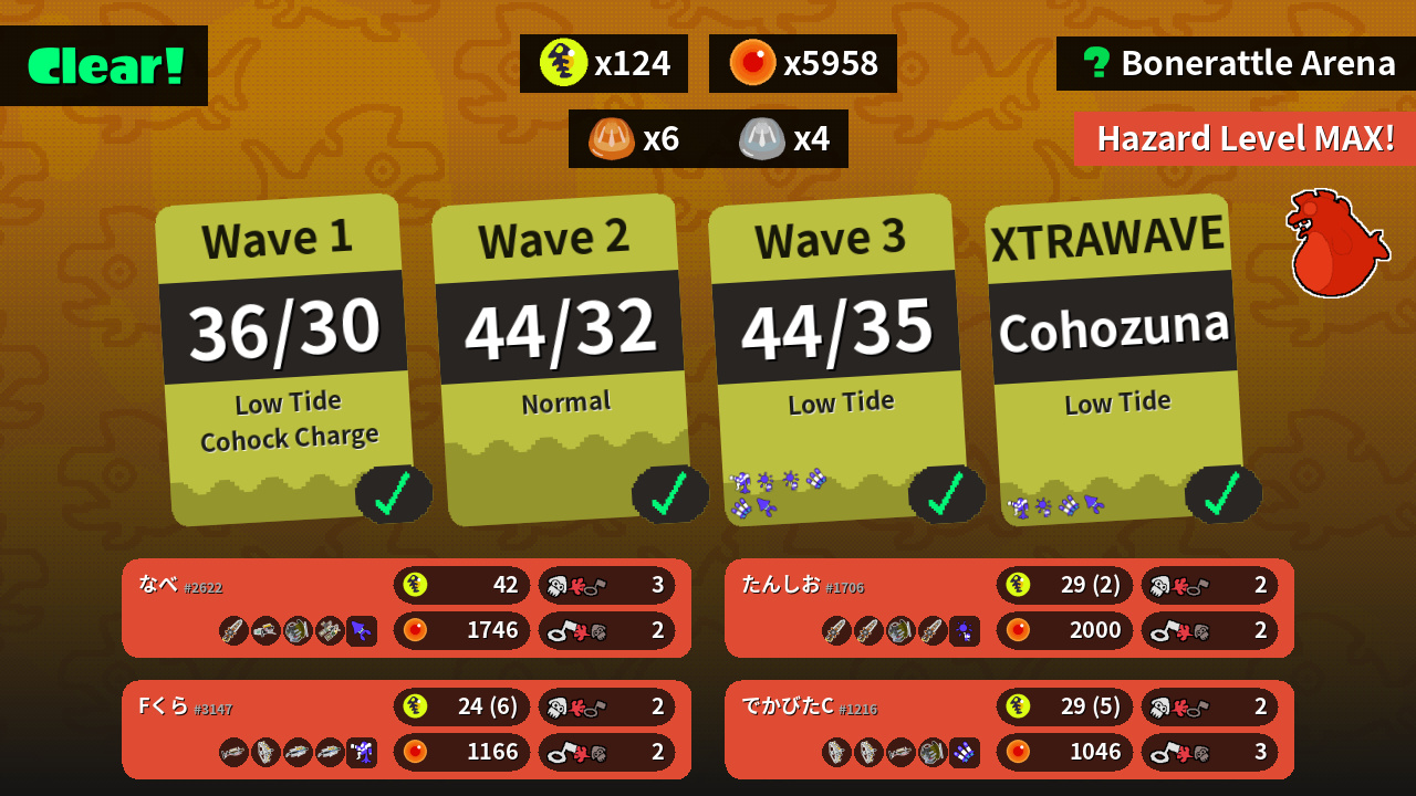 | Weapons | Grizzco Splatana Grizzco Blaster Grizzco Slosher Grizzco Dualies | Grizzco Splatana Grizzco Splatana Grizzco Slosher Grizzco Splatana | Grizzco Stringer Grizzco Stringer Grizzco Charger Grizzco Slosher | Grizzco Charger Grizzco Stringer Grizzco Brella Grizzco Brella |