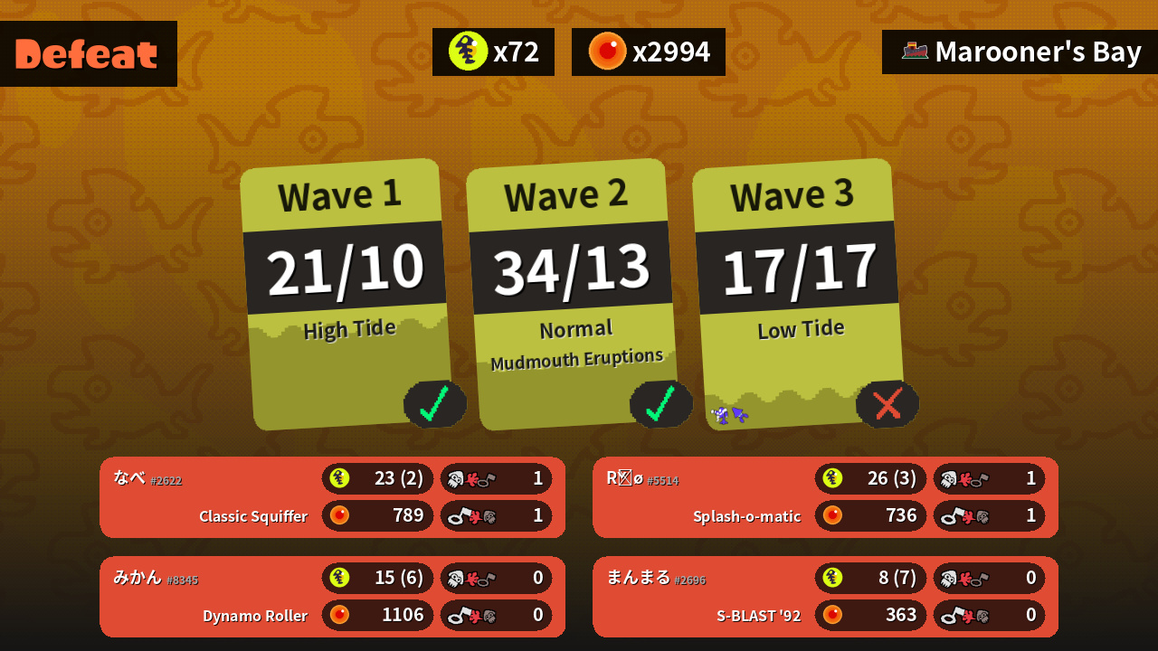 | Boss Salmonid | 8 | 9 | 7 | 0 |