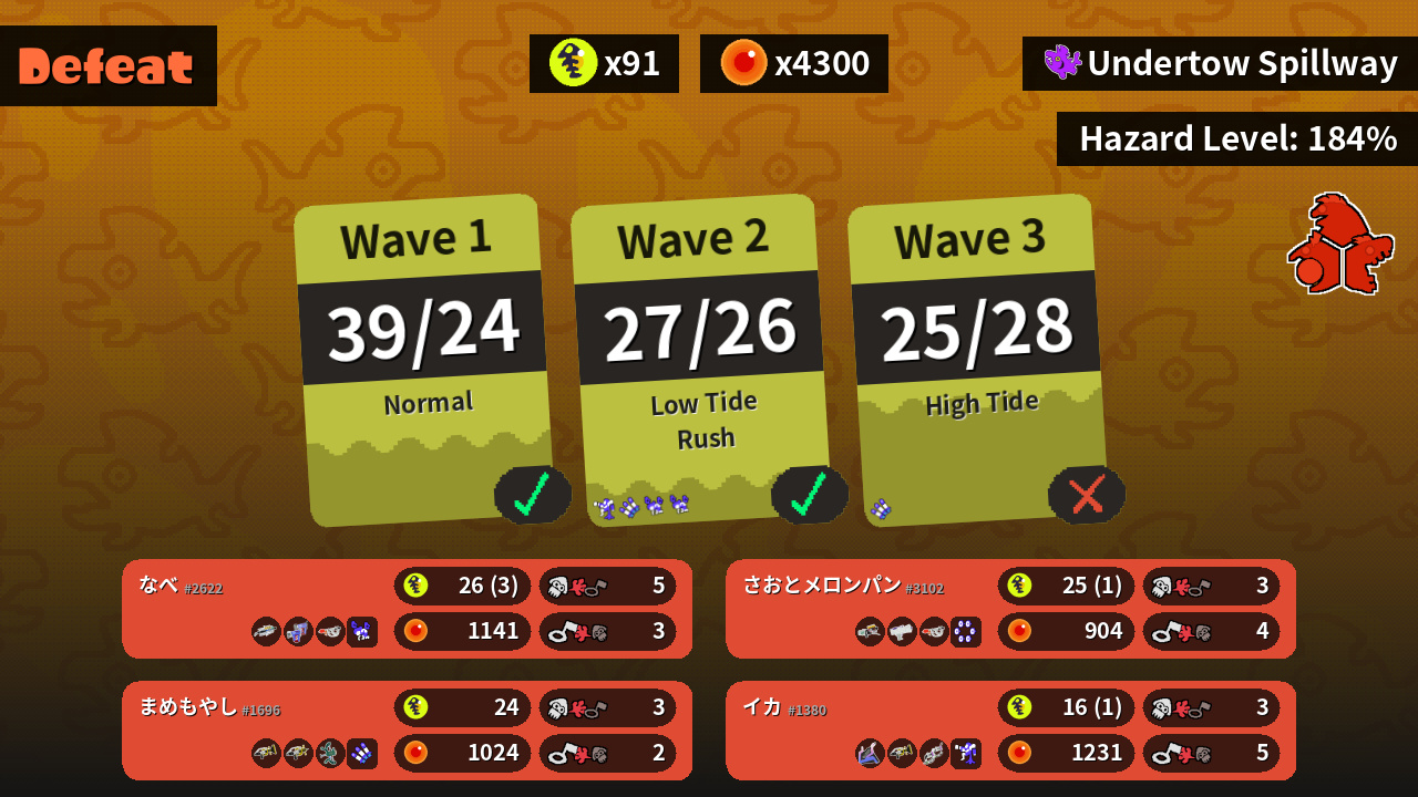 | Weapons | Grizzco Brella Glooga Dualies Goo Tuber | Grizzco Blaster Splattershot Jr. Goo Tuber | Sploosh-o-matic Splash-o-matic Wellstring V | Slosher Sploosh-o-matic Dark Tetra Dualies |