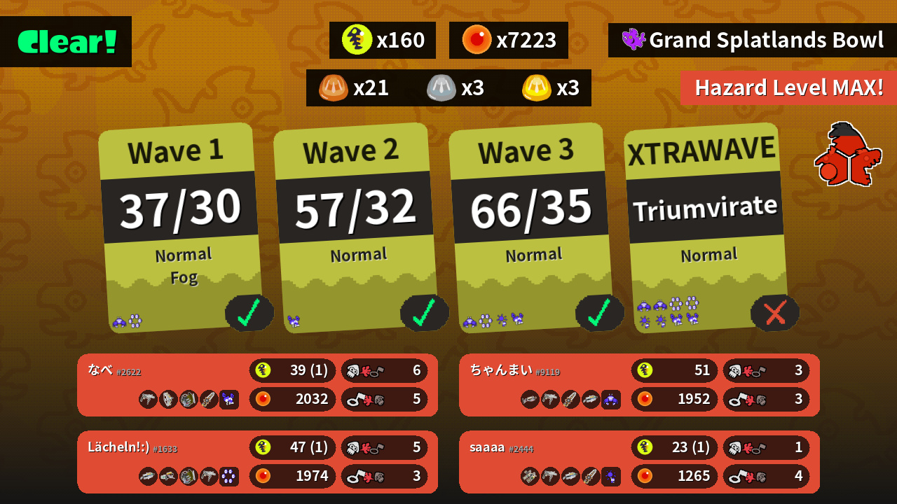 | Weapons | Grizzco Roller Grizzco Stringer Grizzco Slosher Grizzco Splatana | Grizzco Charger Grizzco Roller Grizzco Splatana Grizzco Brella | Grizzco Brella Grizzco Blaster Grizzco Slosher Grizzco Roller | Grizzco Dualies Grizzco Roller Grizzco Brella Grizzco Splatana |