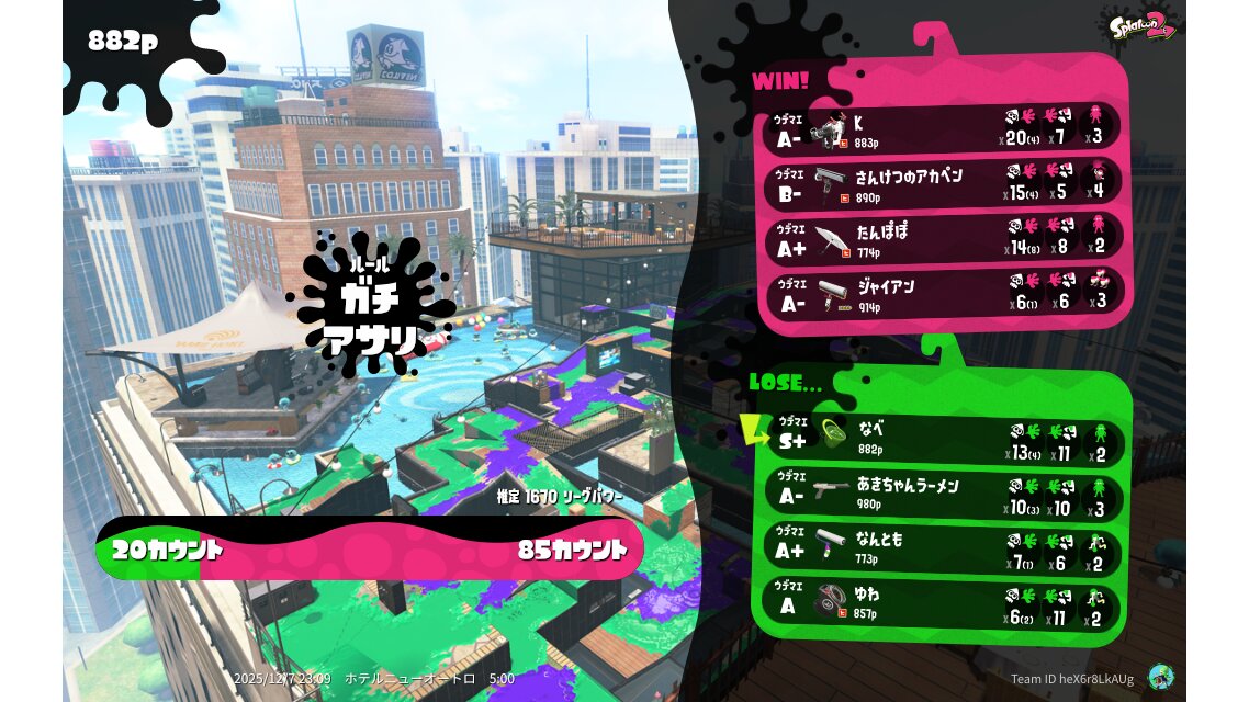 | Mode | Clam Blitz - League Battle (Twin) | |||||||||||||||||||||||||||||||||||||