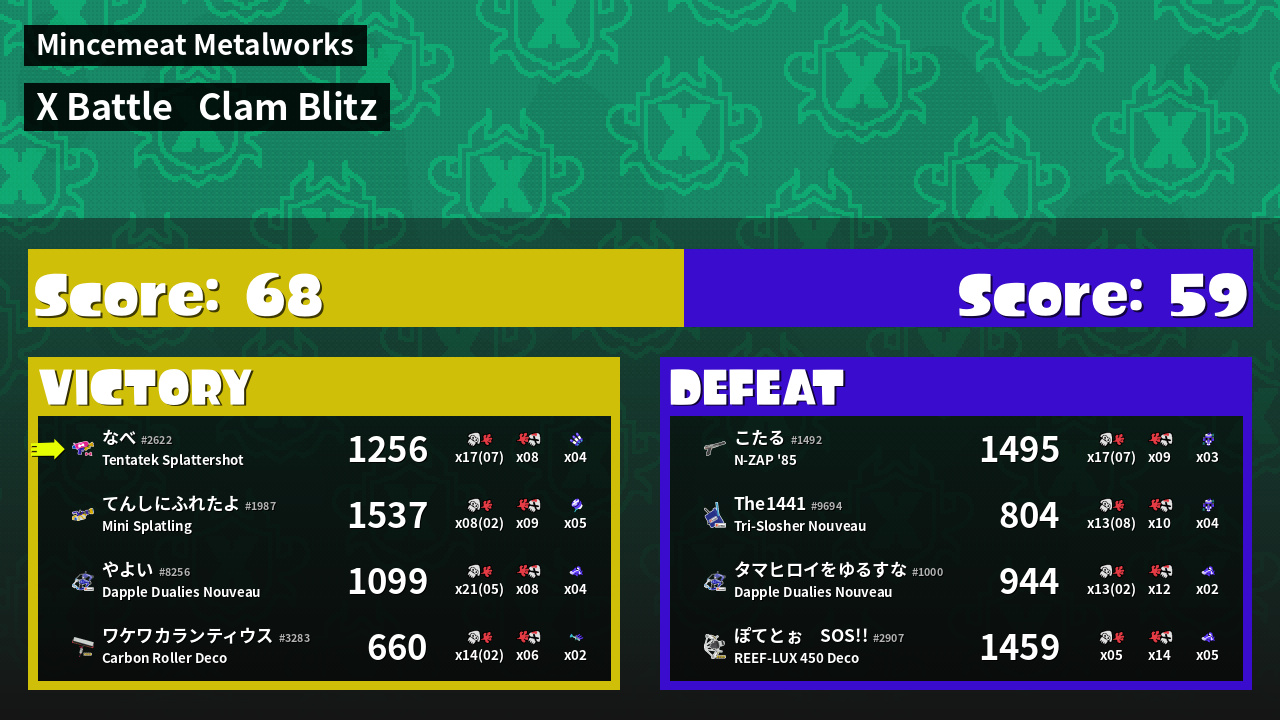 | Mode | Clam Blitz - X Battle | ||