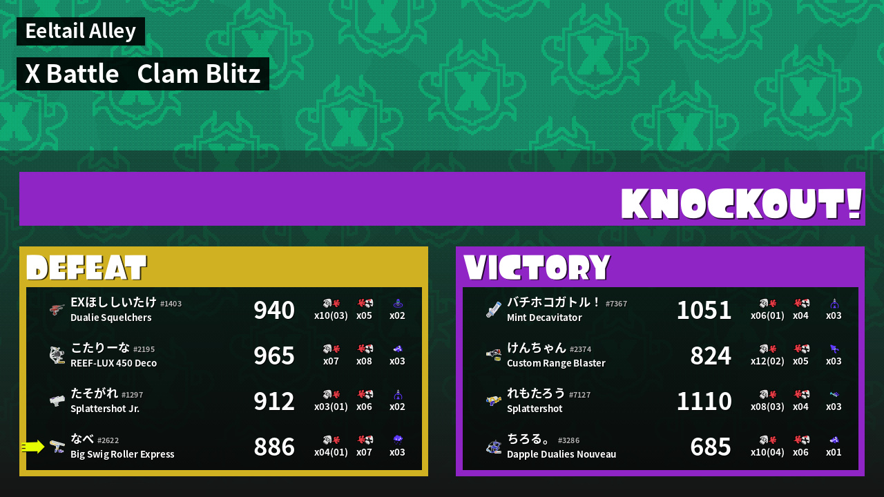 | Mode | Clam Blitz - X Battle | ||