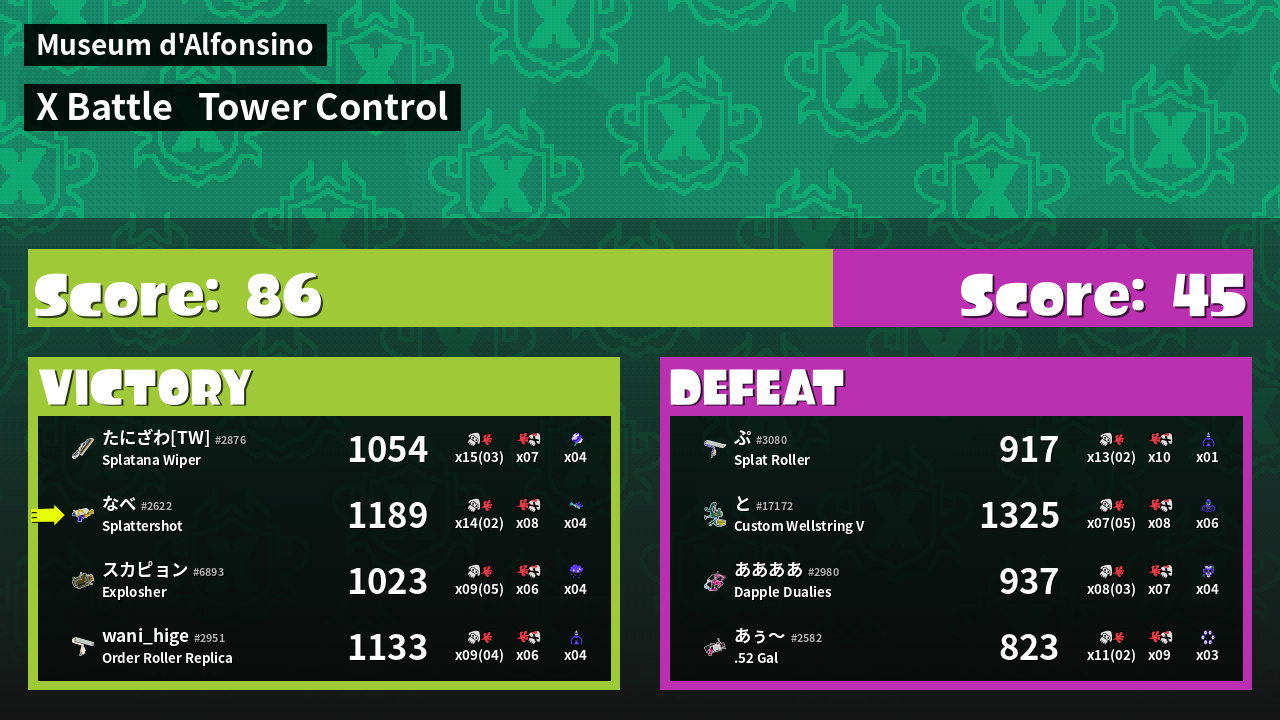 | Mode | Tower Control - X Battle | ||
