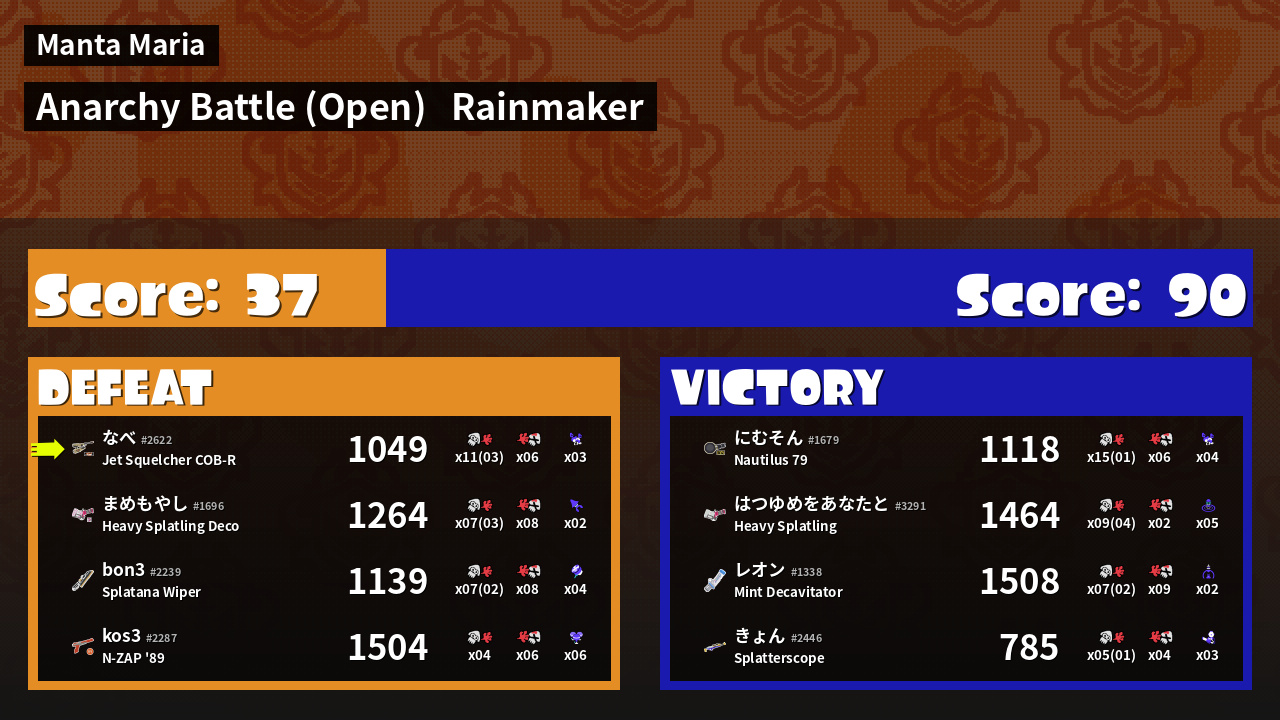 | Mode | Rainmaker - Anarchy Battle (Open) | ||