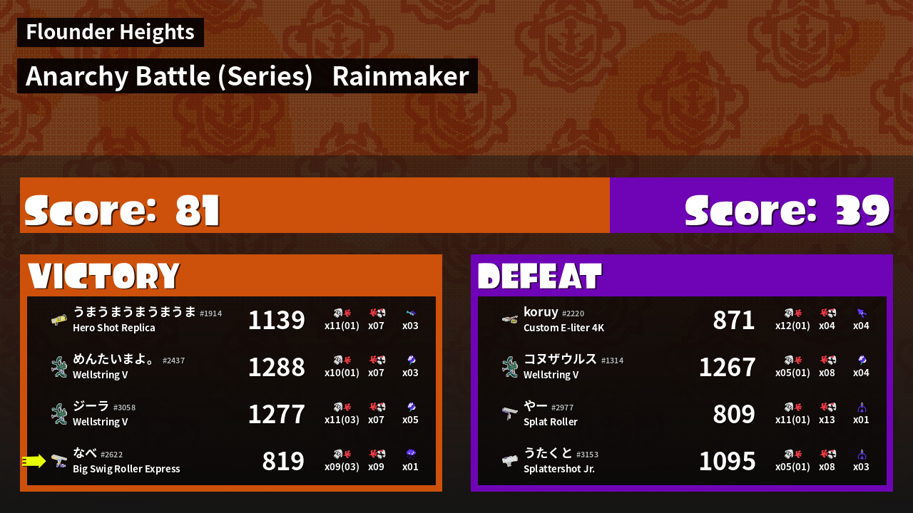 | Medals | #1 Splat Assister #1 Rainmaker Stopper #1 Ink Consumer | ||