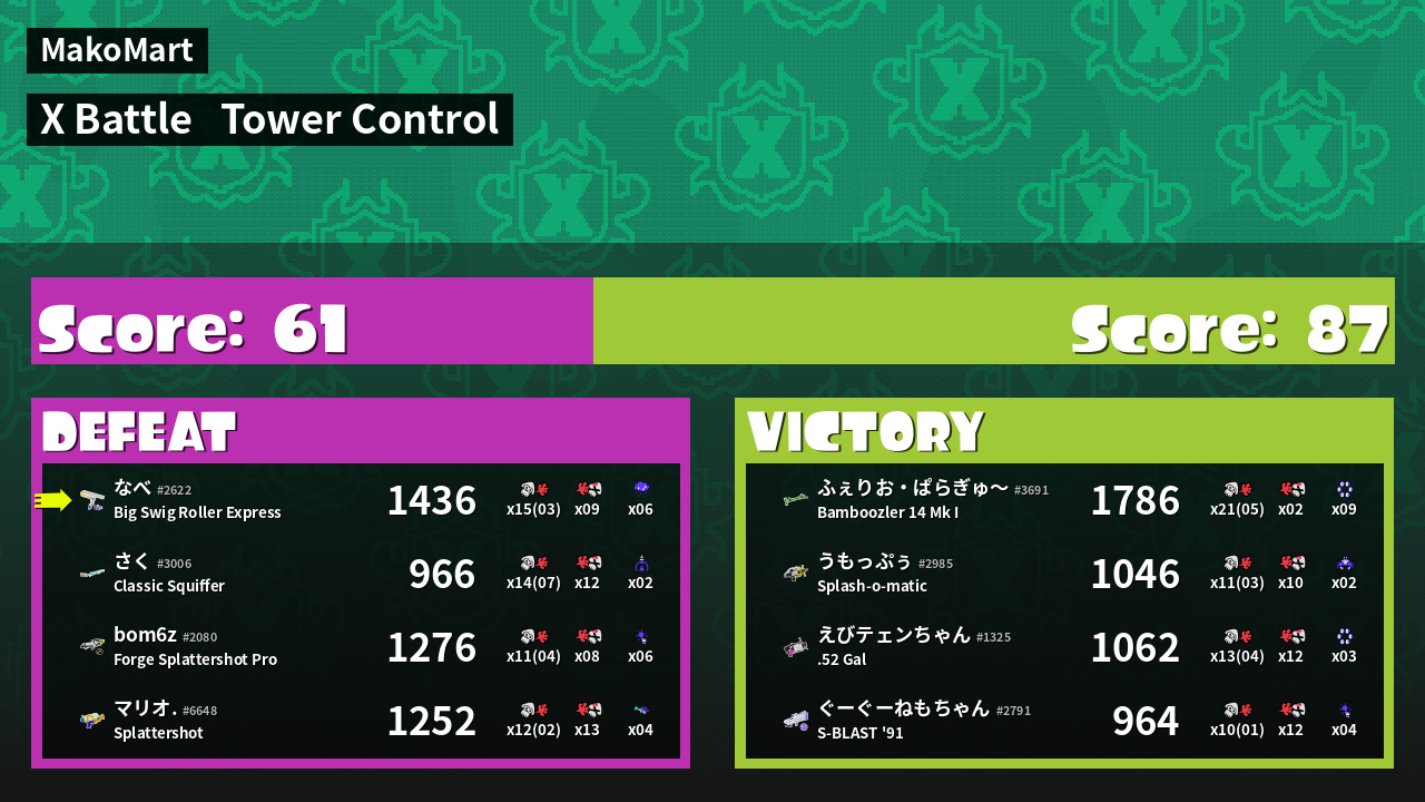 | Medals | #1 Overall Splatter #1 Turf Inker #1 Enemy Splatter | ||