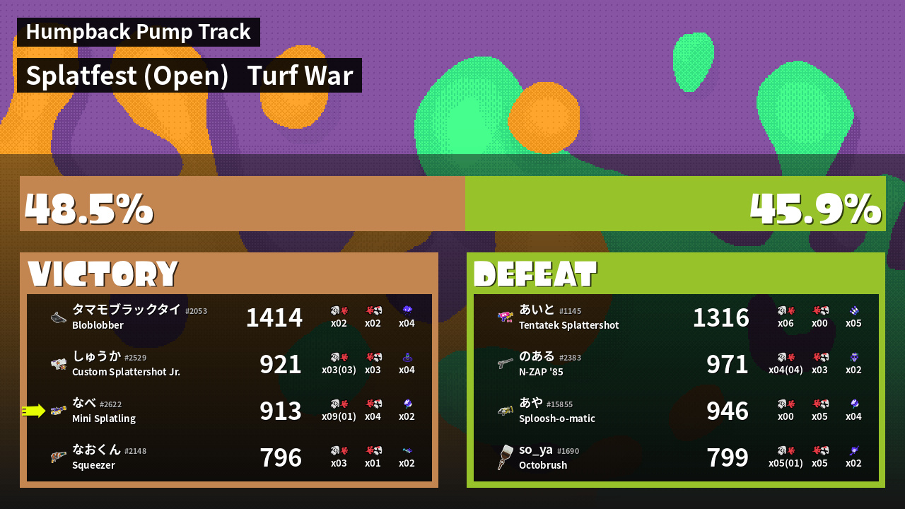 | Medals | #1 Overall Splatter #1 Enemy Splatter #1 Base Defender | ||