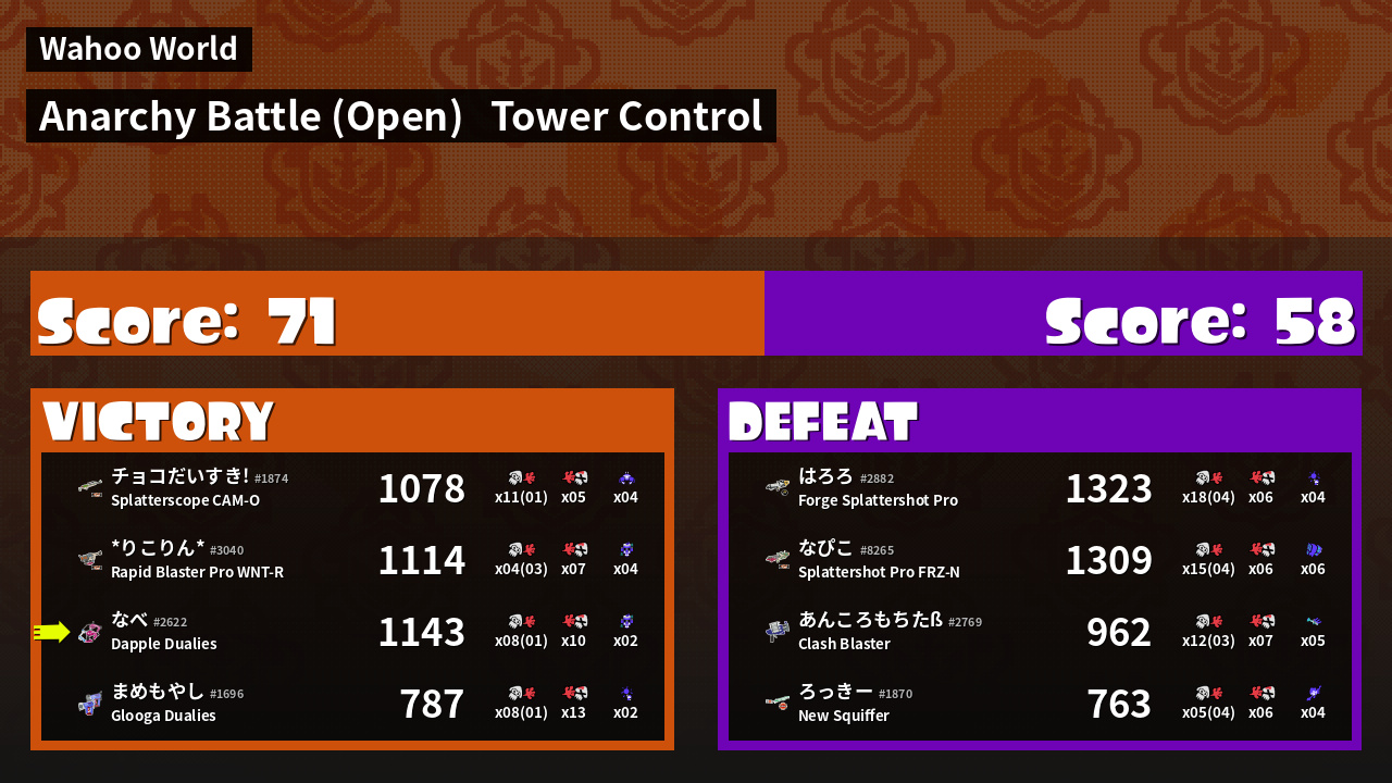 | Mode | Tower Control - Anarchy Battle (Open) |