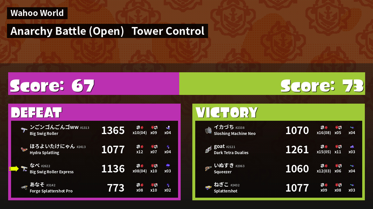 | Mode | Tower Control - Anarchy Battle (Open) | ||
