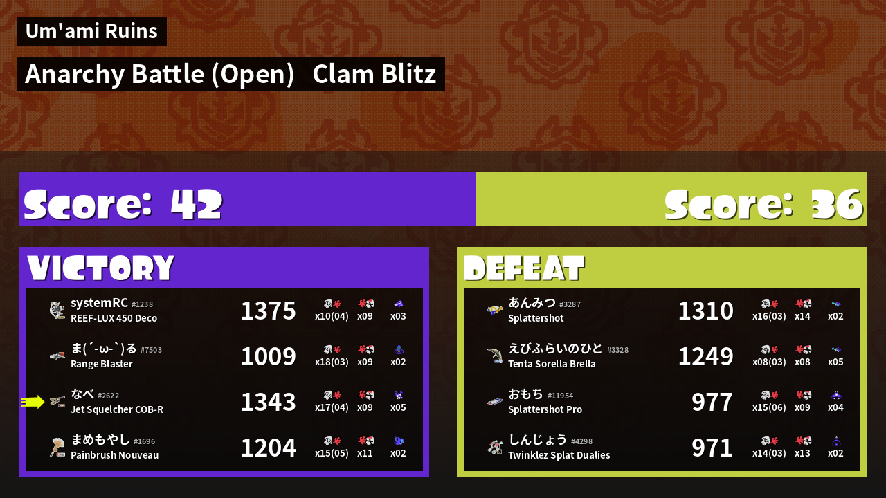 | Mode | Clam Blitz - Anarchy Battle (Open) | ||