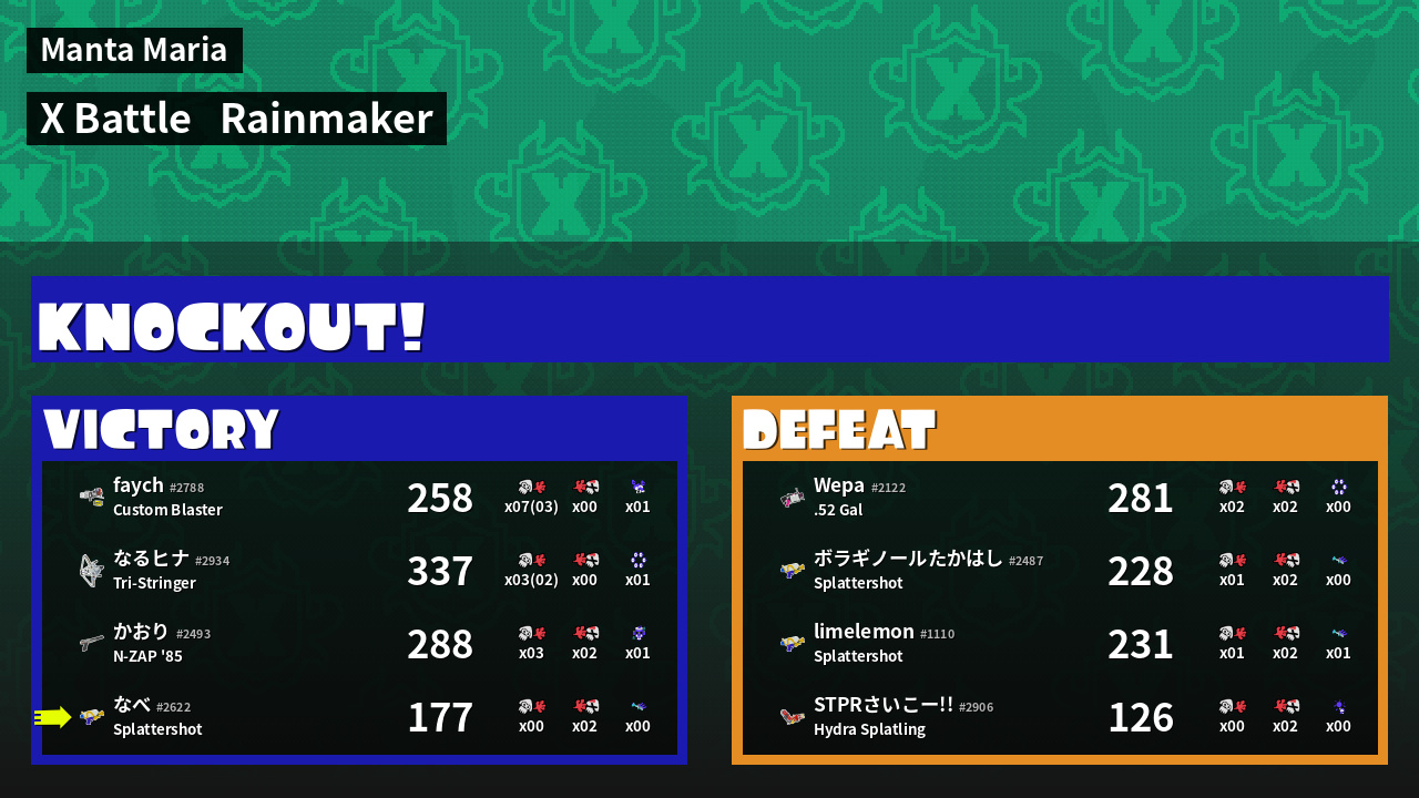 | Weapon | Splattershot ( Suction Bomb / Trizooka) | ||