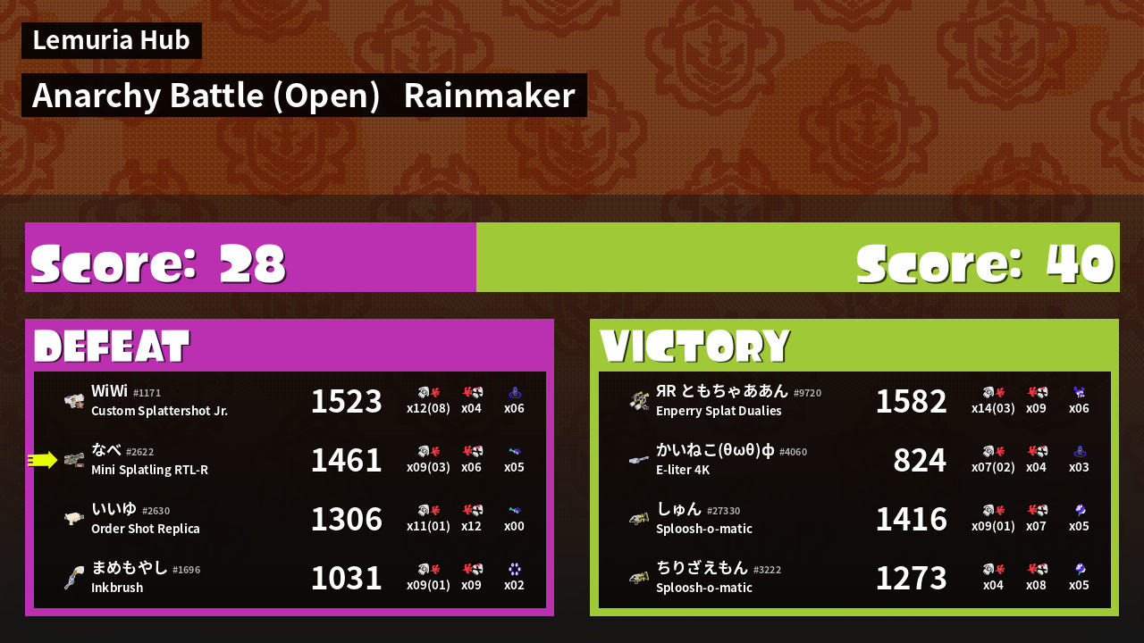 | Mode | Rainmaker - Anarchy Battle (Open) |
