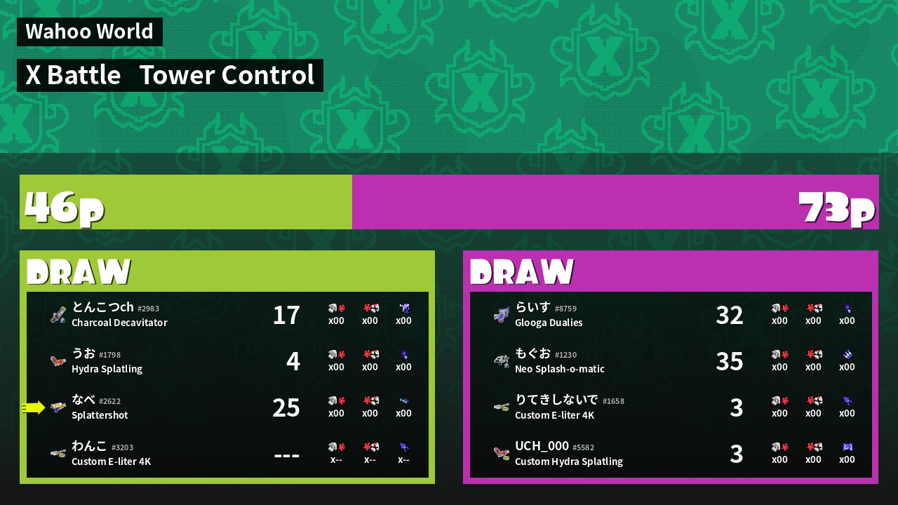 | Weapon | Splattershot ( Suction Bomb / Trizooka) | ||