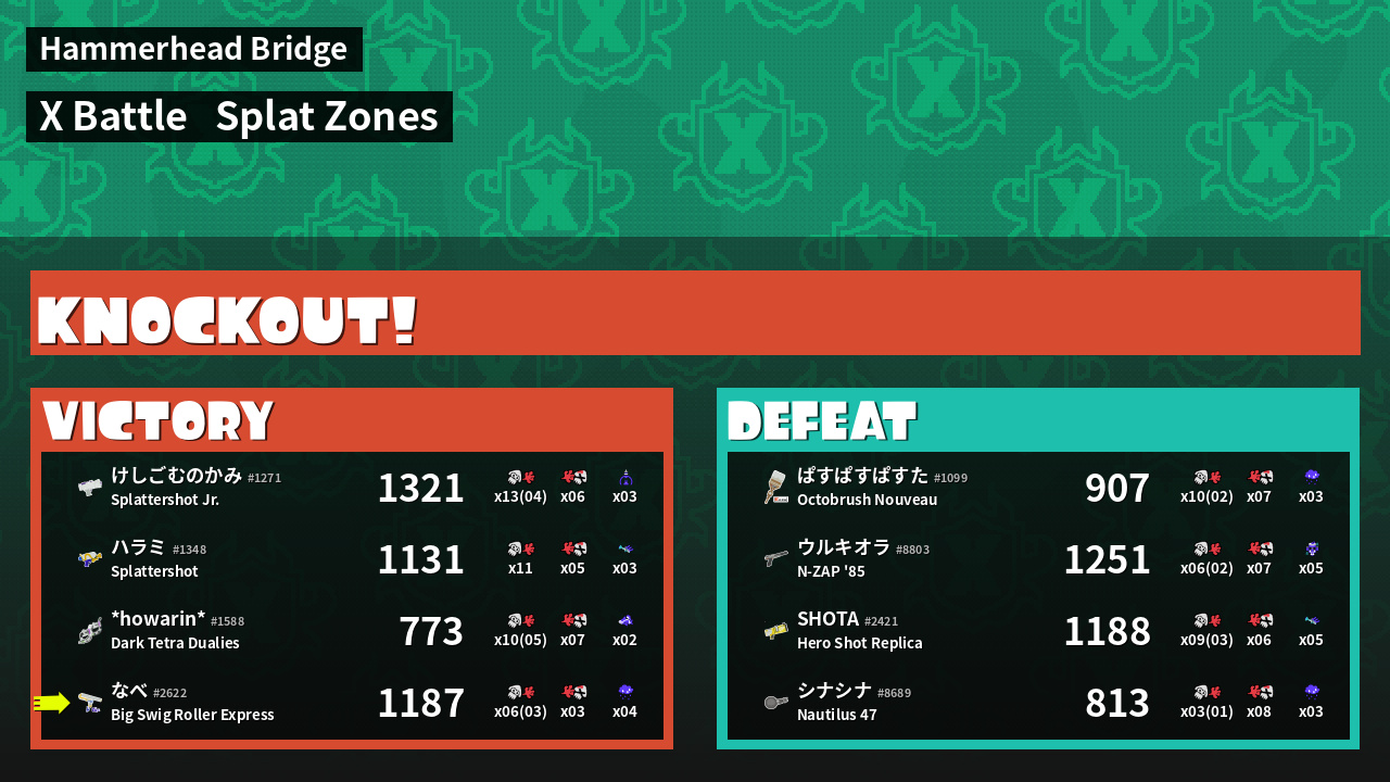 | Medals | #1 Splat Zone Hero #1 Ground Traveler #1 Ink Storm User | ||