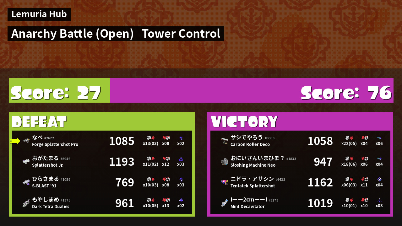 | Mode | Tower Control - Anarchy Battle (Open) | ||