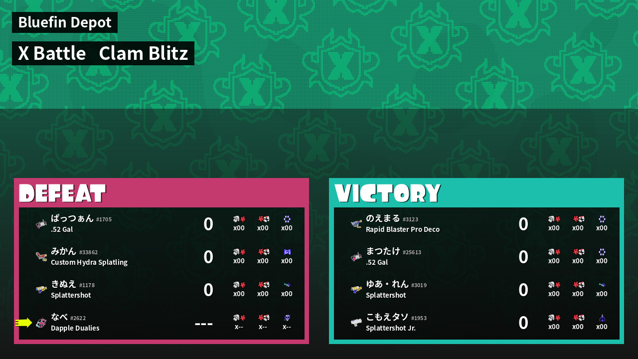 | Mode | Clam Blitz - X Battle | ||