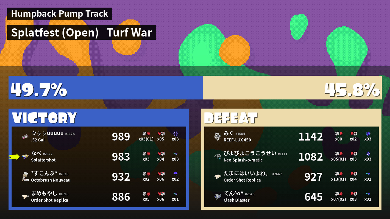 | Medals | #1 Enemy-Base Inker #1 Damage Taker #1 Trizooka User | ||