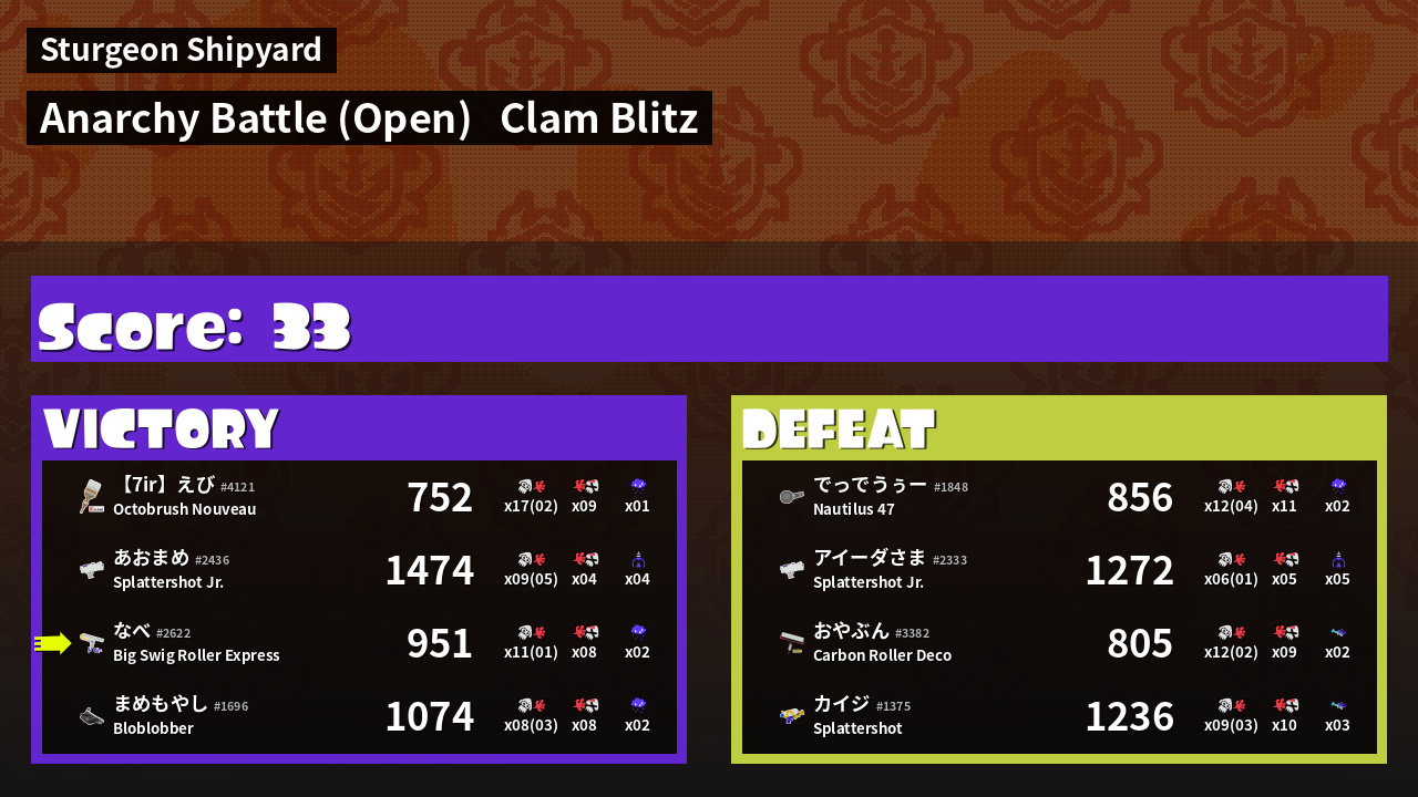 | Mode | Clam Blitz - Anarchy Battle (Open) | ||