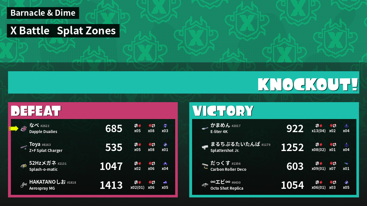 | Medals | #1 Overall Splatter #1 Super Jump Spot #1 Enemy Splatter | ||