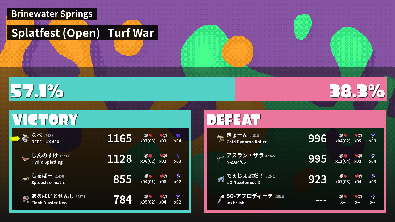| Medals | #1 Overall Splatter #1 Turf Inker #1 Home-Base Inker | ||