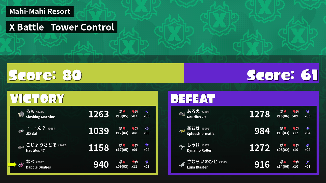 | Mode | Tower Control - X Battle | ||