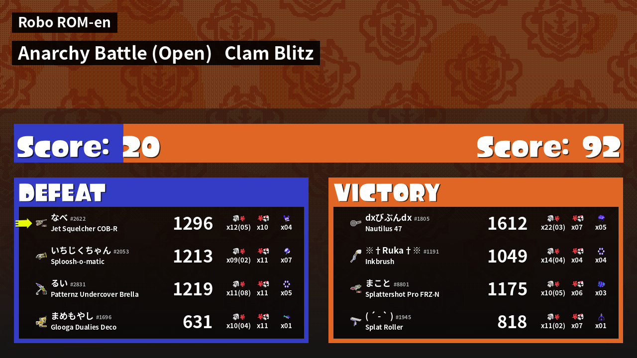 | Mode | Clam Blitz - Anarchy Battle (Open) |