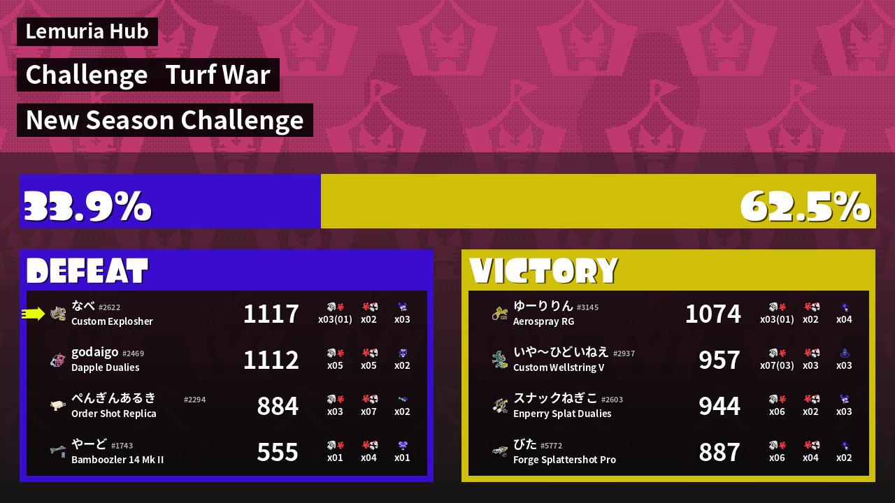 | Medals | #1 Turf Inker #1 Super Jump Spot #1 Splat Assister | ||