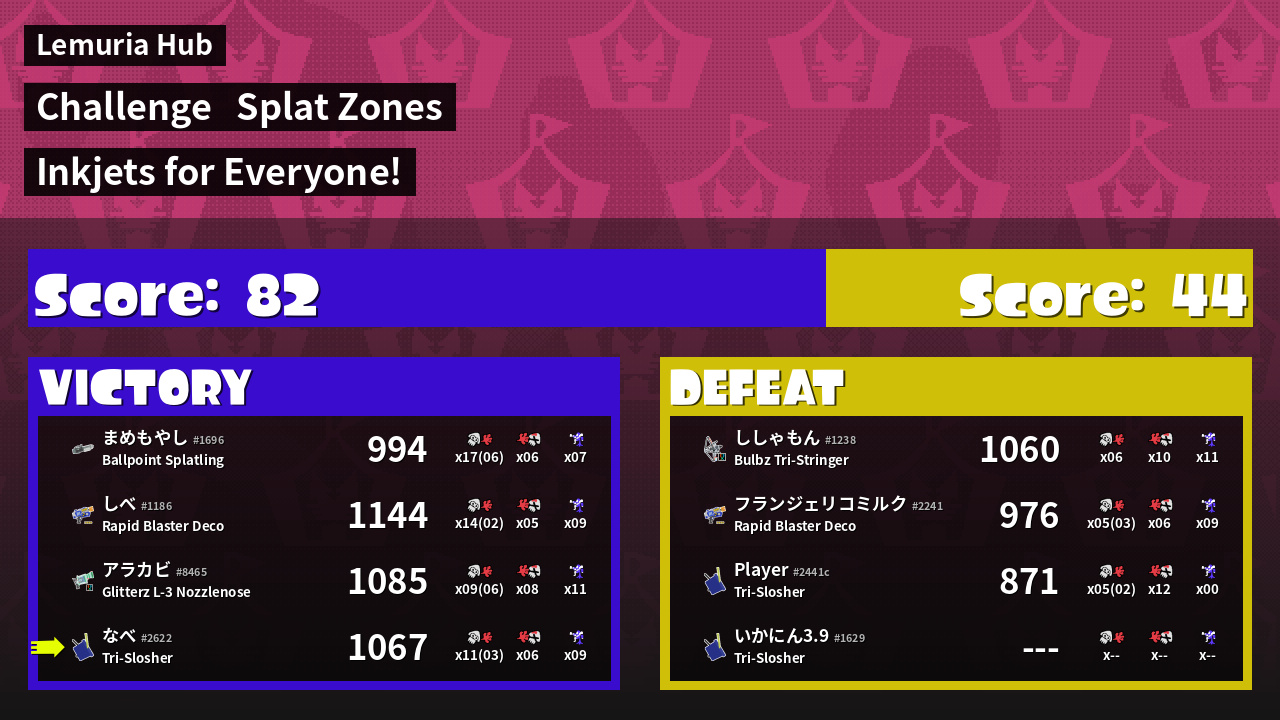 | Mode | Splat Zones - Challenge |
