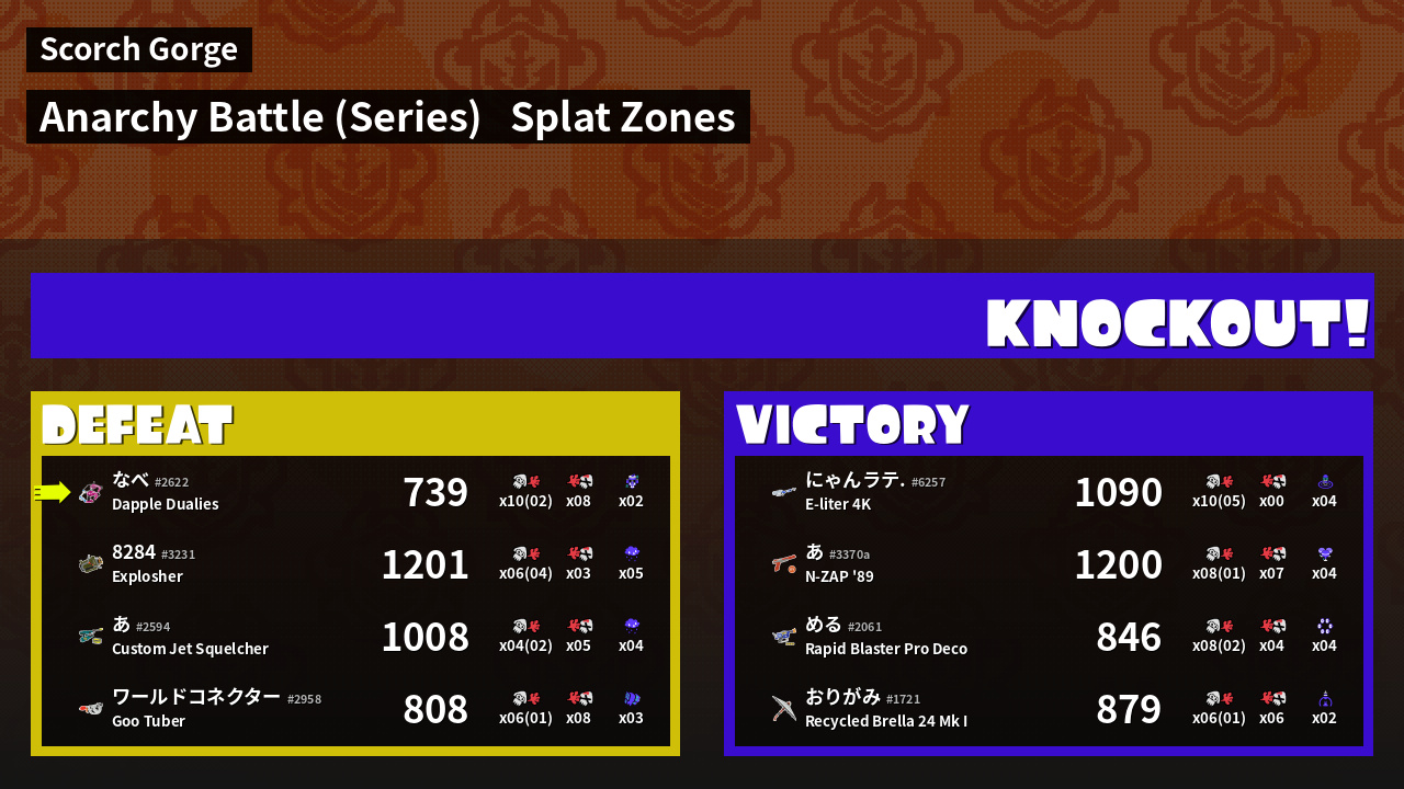 | Medals | #1 Overall Splatter #1 Splat Zone Guard #1 Enemy Splatter | ||