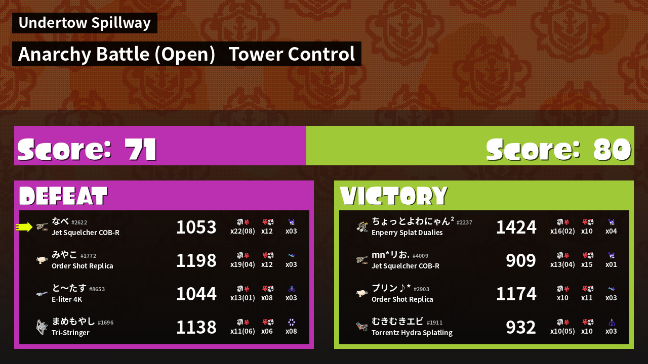 | Mode | Tower Control - Anarchy Battle (Open) |