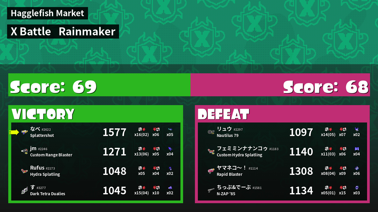 | Medals | #1 Overall Splatter #1 Turf Inker #1 Enemy Splatter | ||