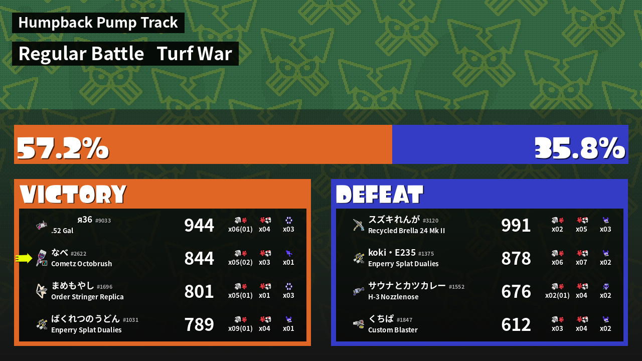 | Mode | Turf War - Regular Battle | ||