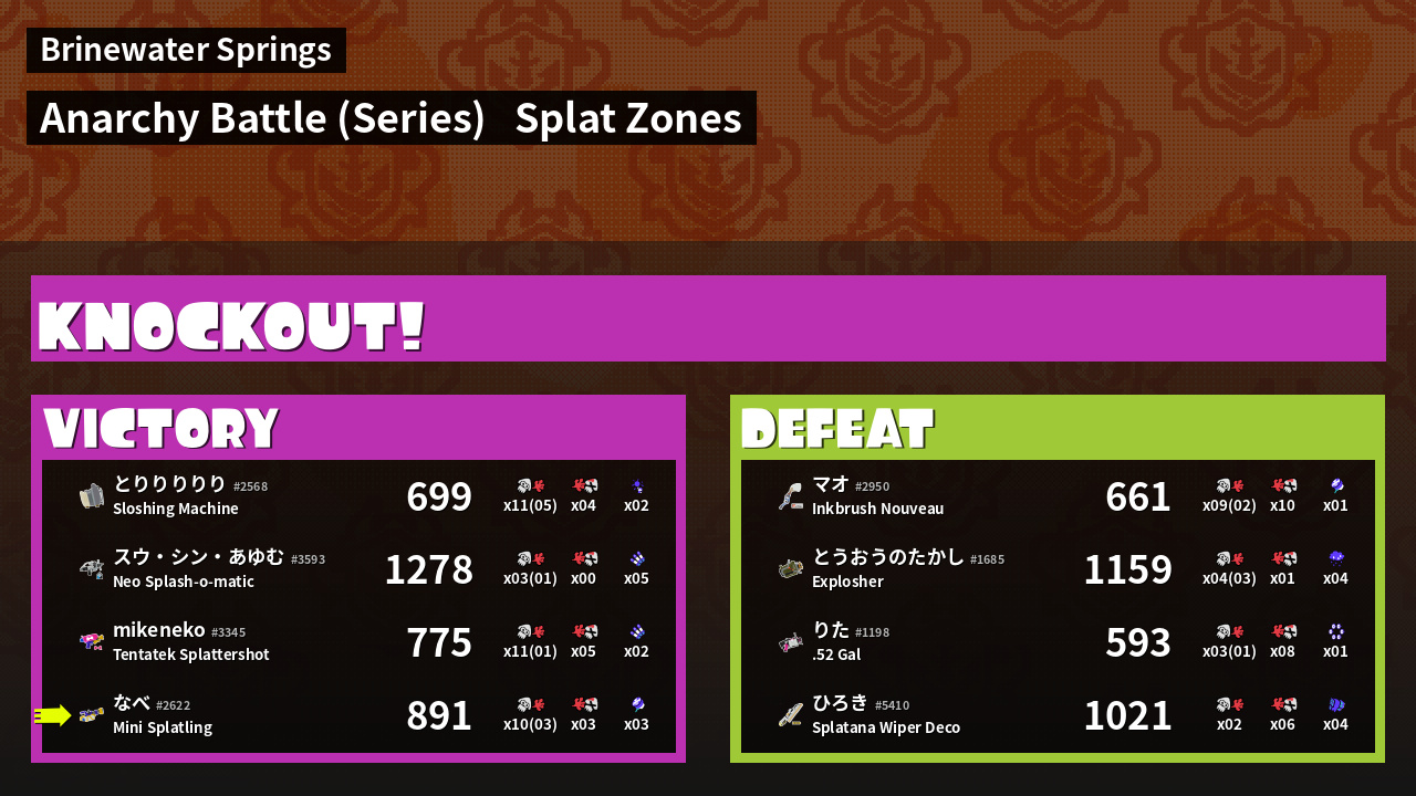 | Mode | Splat Zones - Anarchy Battle (Series) | ||