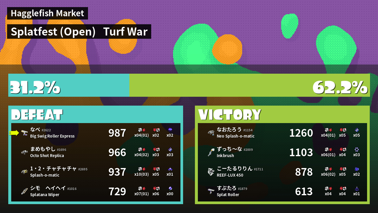 | Weapon | Big Swig Roller Express ( Angle Shooter / Ink Storm) | ||