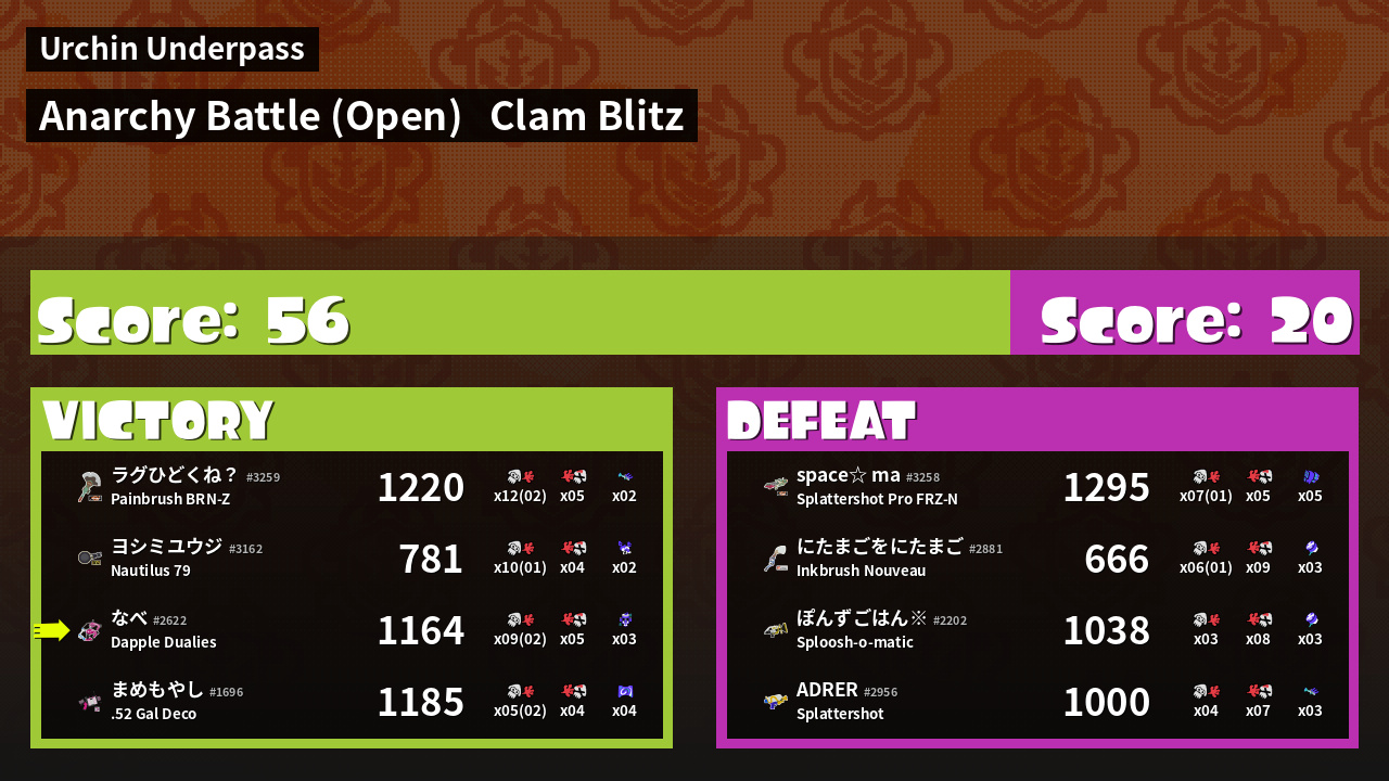 | Mode | Clam Blitz - Anarchy Battle (Open) |
