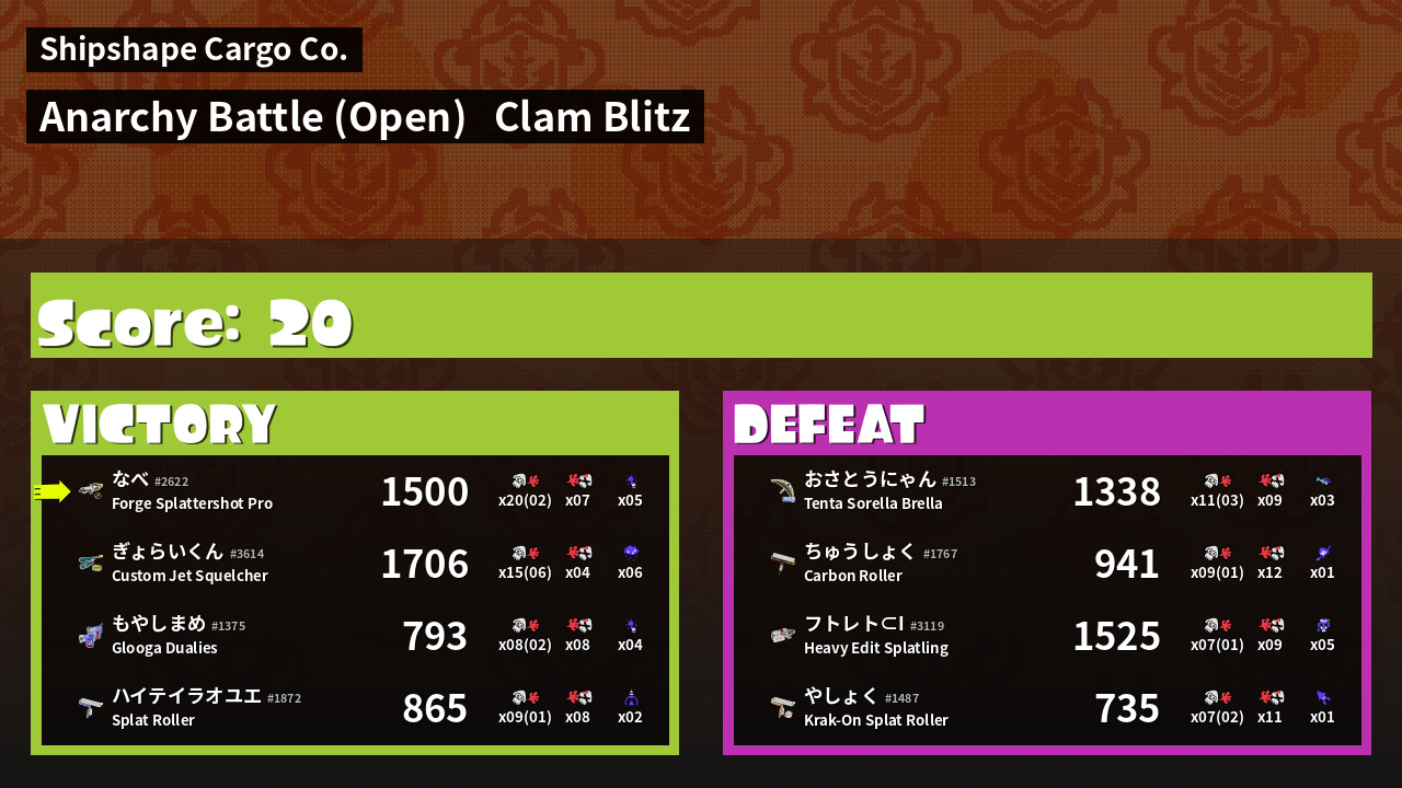 | Mode | Clam Blitz - Anarchy Battle (Open) | ||