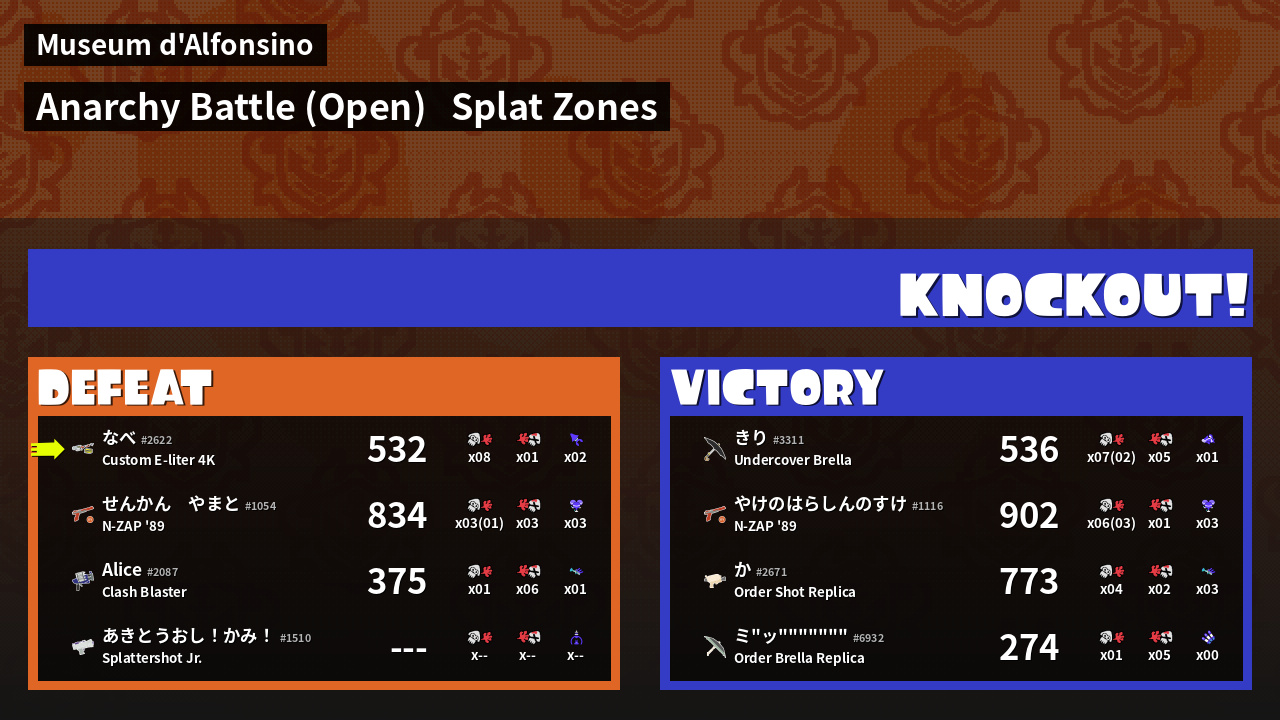 | Mode | Splat Zones - Anarchy Battle (Open) | ||