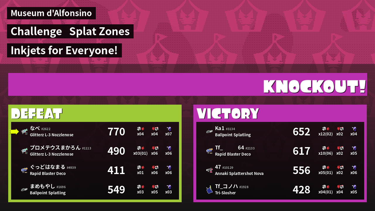 | Weapon | Glitterz L-3 Nozzlenose ( Splat Bomb / Inkjet) |