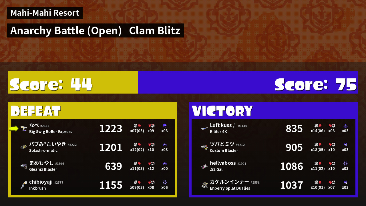 | Mode | Clam Blitz - Anarchy Battle (Open) | ||