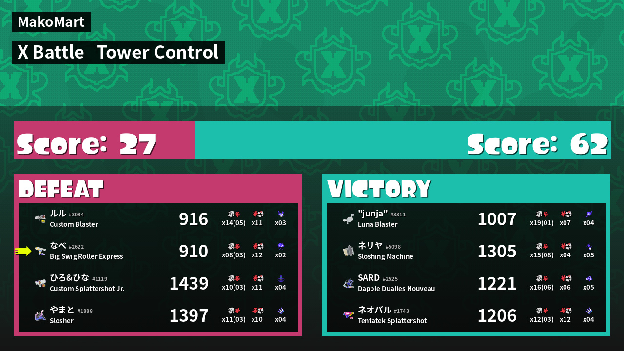 | Weapon | Big Swig Roller Express ( Angle Shooter / Ink Storm) | ||